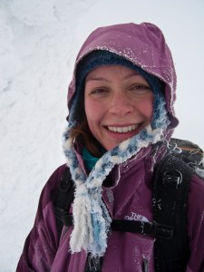After a while we get to the top of Cairngorm, the wind is bitter cold and the temperature is around -15 with the wind chill – below is Lara with added ice