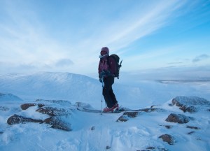 Once at the bottom, off with the skins and out with the map and compass, it was time to get off the plateau as it was just soooooo cold. It was an easy decision to make to quite our longer ski plans and make an escape down The ridge into Corrie an Cas, we just had to find it! So with the use of the map and compass we slowly made our way off.