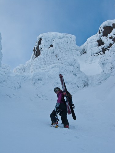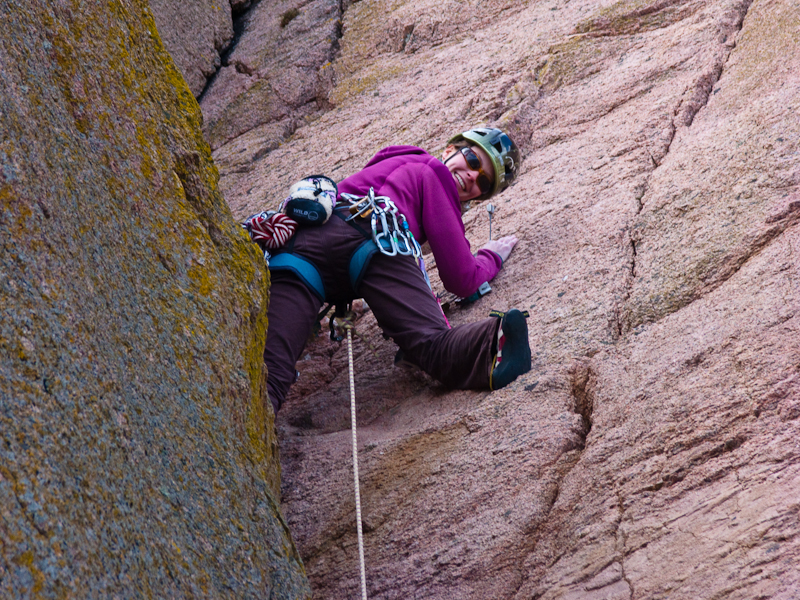 With the attentative husband holding the other end of the ropes. She seemed at ease and confident on the rock seeing that it has been a long time since either of us has climbed on rock (see previous months of skiing posts!) When I asked her if she was alright she turned around