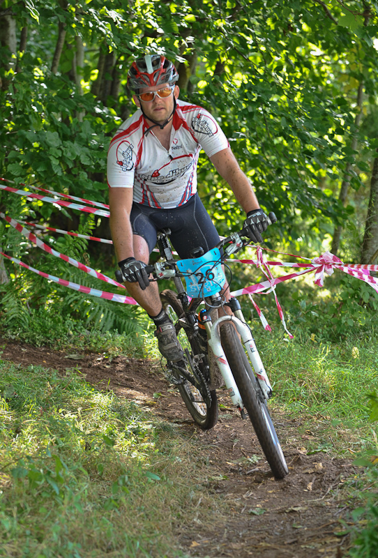 The first few laps went past no issues, the track was great, fast, flowing and fun. This was going to be great fun – but it was rather hot! Most of the track was in the forest sheltered from any wind and the thermometer was tipping over 20’s. My thoughts started to think towards keeping hydrated. Knowing how much I sweat, I thought I had better take precaution. Every lap I made sure I drank my entire water bottle which was filled each lap with different liquids for interest.