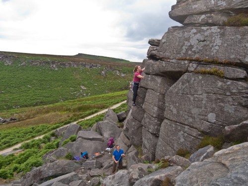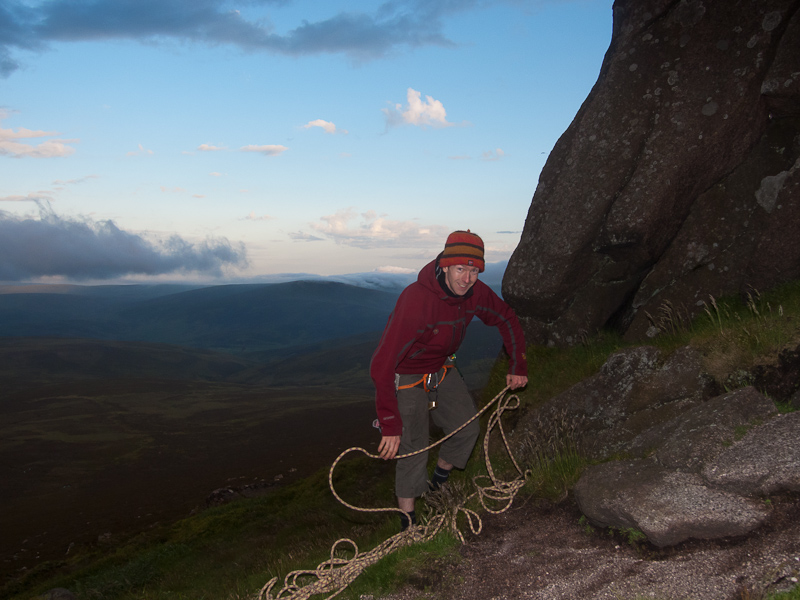 The ridge can be seen above – Euan had not done too much scrambling in his life, so to satisfy the fear and nerves of the wives we roped up together for safety and scrambled up the ridge. There are some pretty exposed positions on this ridge and Euan did them all with no worries, even stopping for a gun show!