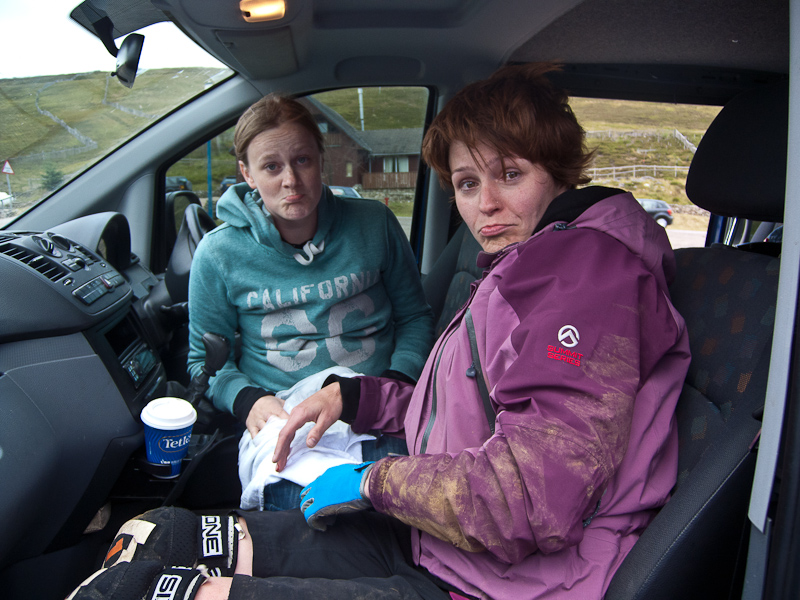 Sunday we set off to go to the lecht to ride the lift accessed trails with the Cartlidge family and Richard. Lainie strangely was quite on the way there, only once ever have I seen her in this state, and that was 2 years ago driving to Orciere Merlette when she had her first go at skiing….. odd. It was to be Lainie’s first go at proper trail riding, she was strangely not her normal chatty self.