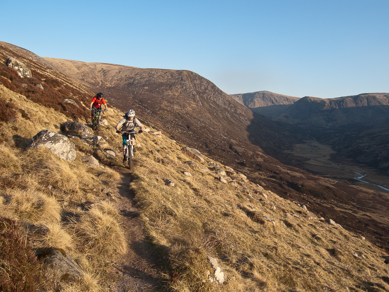 As always it soon turned into a race. All three of us pushing to be first. Scott was the first to puncture….. After having a small blonde moment with my pump he worked it out and we were back on our way. It is a long descent losing around 600m vertical and about 3.5km long. At the bottom we all had arm pump but one hell of a good descent in the bank. All there was to do now was ride along the glen and get to the bothy were we were to spend the night.