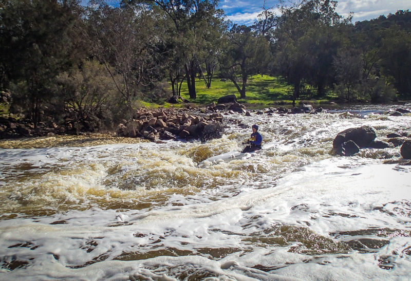 The rapids were great fun, people all over the place, a good high level of water than my previous attempts made them a little less of a rock banging episode. I got to the Big rapids called ‘Emu’s’ and had to wait there for 5 minutes for a red flag (safety teams red flag when there is a rescue in process), others got out their boats and ran around which was probably faster, but I wanted to paddle these rapids.