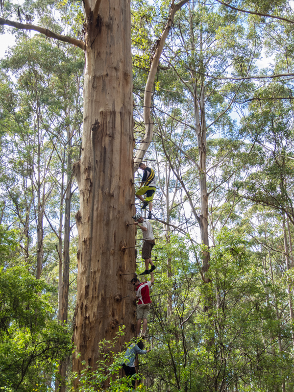 we had a great breakfast in Pemberton and visited the Gloucester tree. This tree is the worlds second largest Fire look out tree standing at 72m tall. in the 30’s to the 50’s it was used as a fire look out. They have banged metal rungs into the tree in a spiral and you can climb up them to the top where there is a platform.